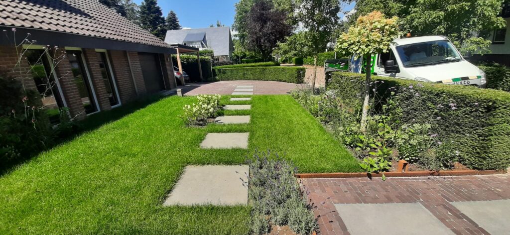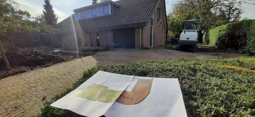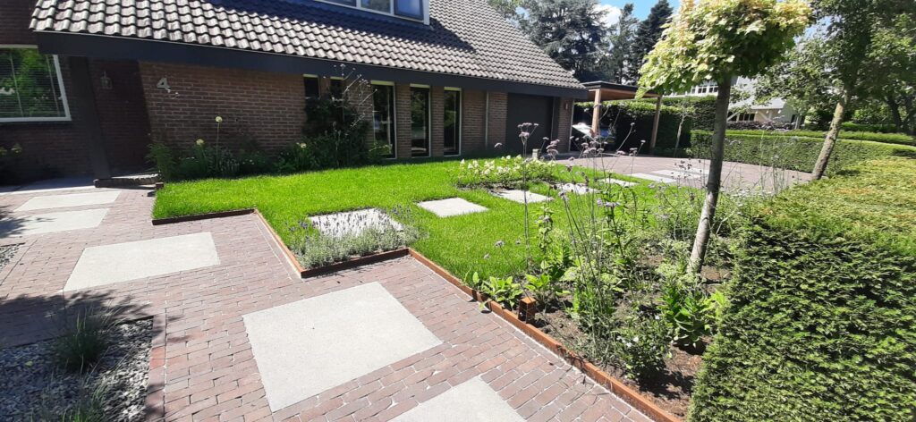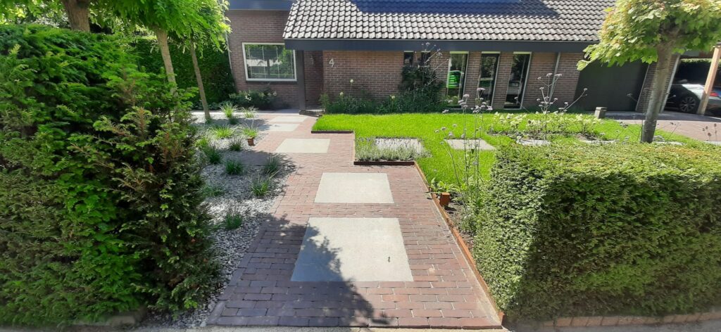 Renovatie oprit/voor-zijtuin in Tiel volgens ontwerp;